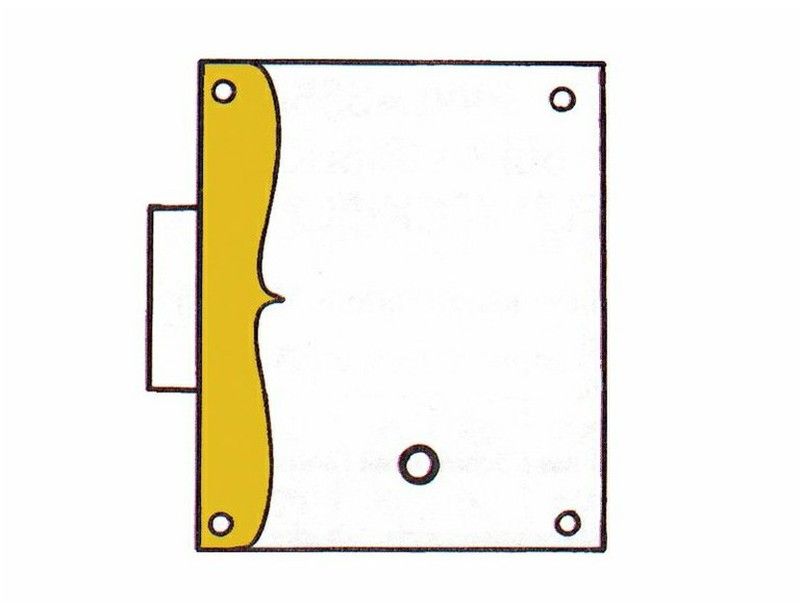 Cerradura sobreponer. Acabado: hierro con frente de latón.